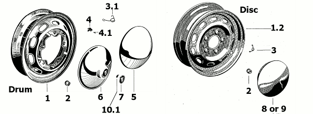 Clip Set - Hub caps. Includes 5 clips with 5 rivets. Drum Brake cars. |